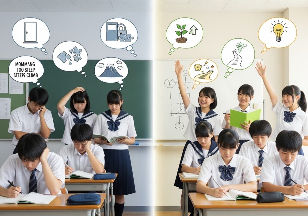 テストの点数や周りの評価を気にしすぎるあまり、挑戦すること自体を避けてしまう生徒は少なくありません。特に、努力が結果に結びつかずに悩んでいる生徒や保護者の方にとって、「失敗への恐怖」は大きな壁となります。