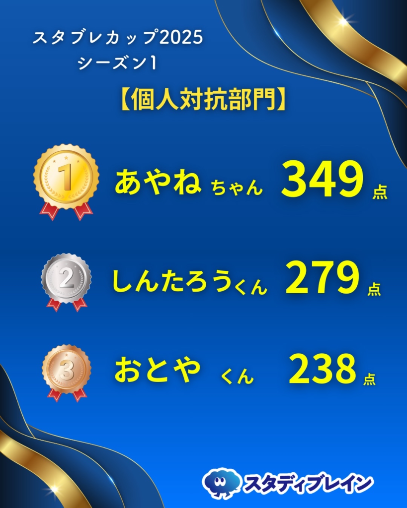 個人対抗部門:結果(スタブレカップ2025シーズン1)