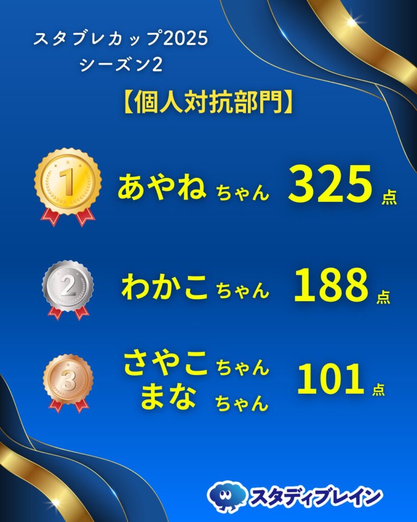 個人対抗部門:結果(スタブレカップ2025シーズン2)