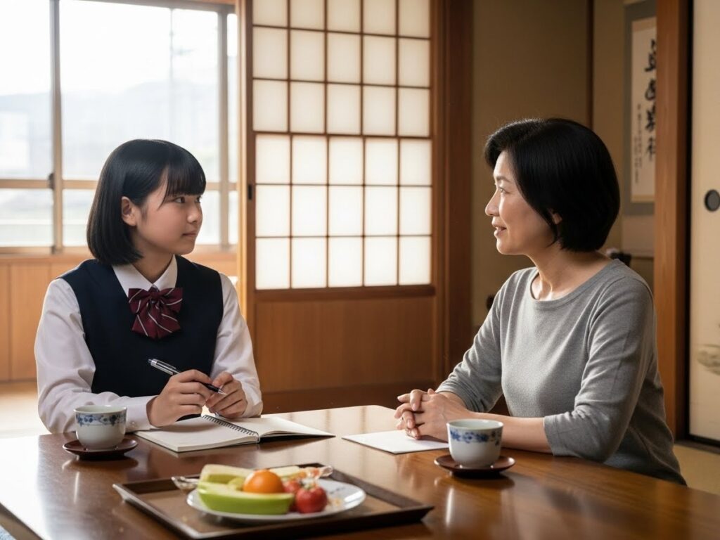 ノートや教科書を見て、