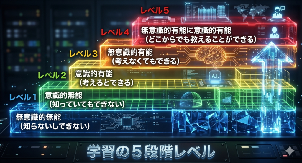 前述の「学習の5段階」を使って振り返ると、さらに言語化が鋭くなります。