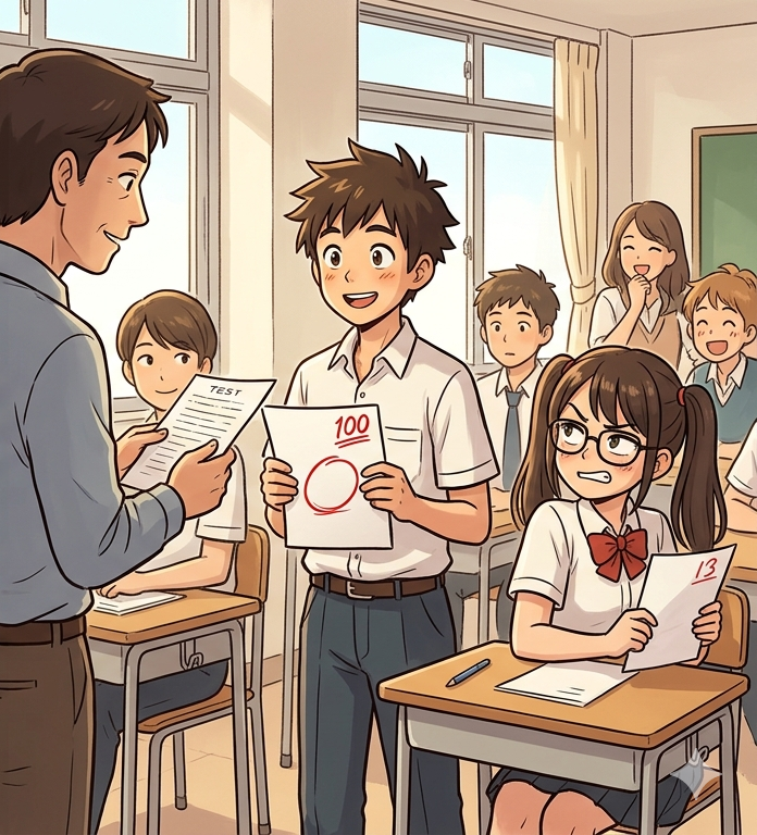 そう、彼らの言う「全然」とは「完璧ではない」の同義語なのです。100点満点を目指す者にとって、90点しか取れそうにない状態は「絶望的な未着手」と同じカテゴリーに分類されます。これを真に受けて「あ、あいつもやってないんだ。じゃあ俺も寝よ」とゲームを始めたら最後、翌日の答案返却時に、裏切りという名の高得点を見せつけられることになります。