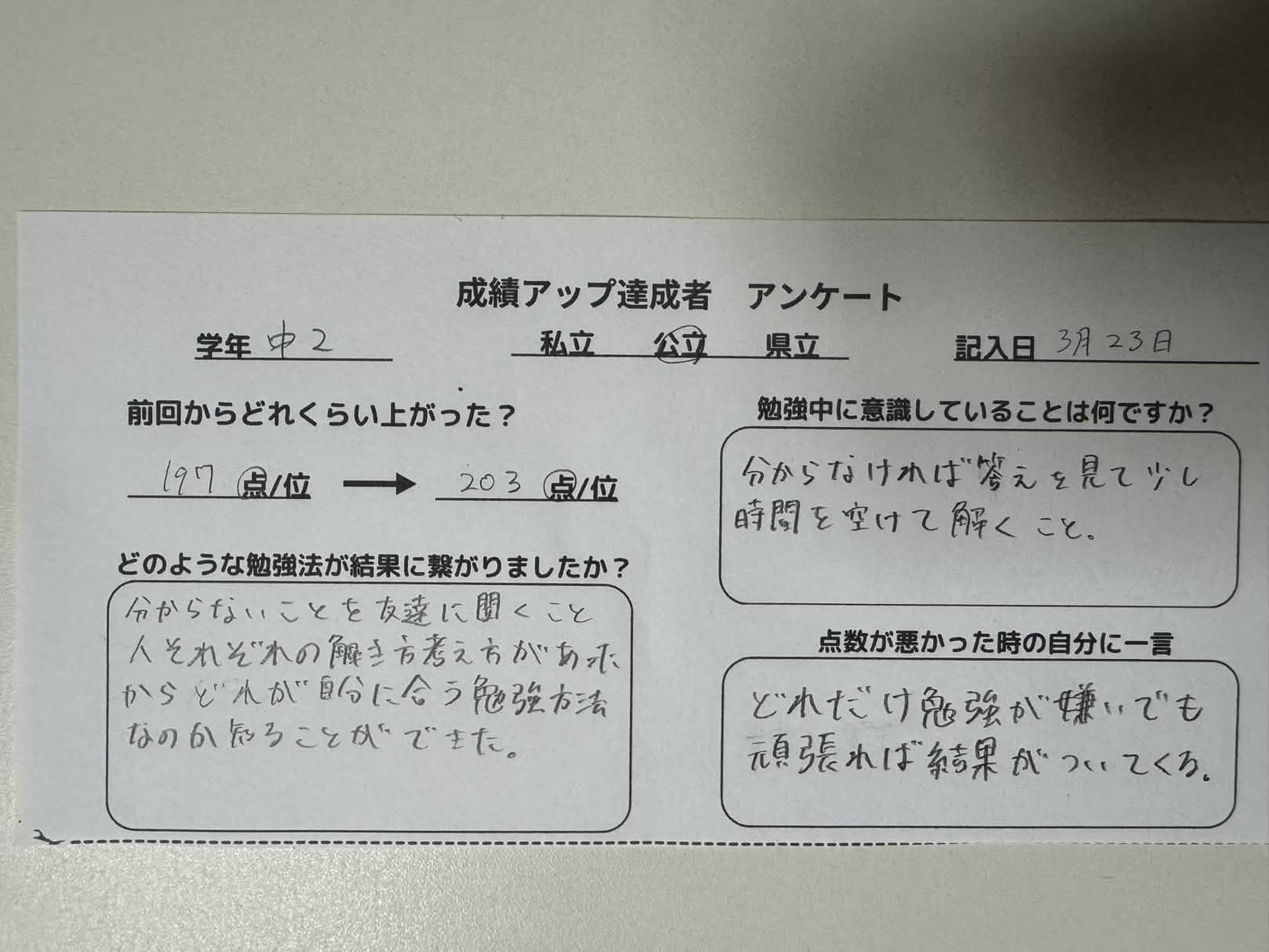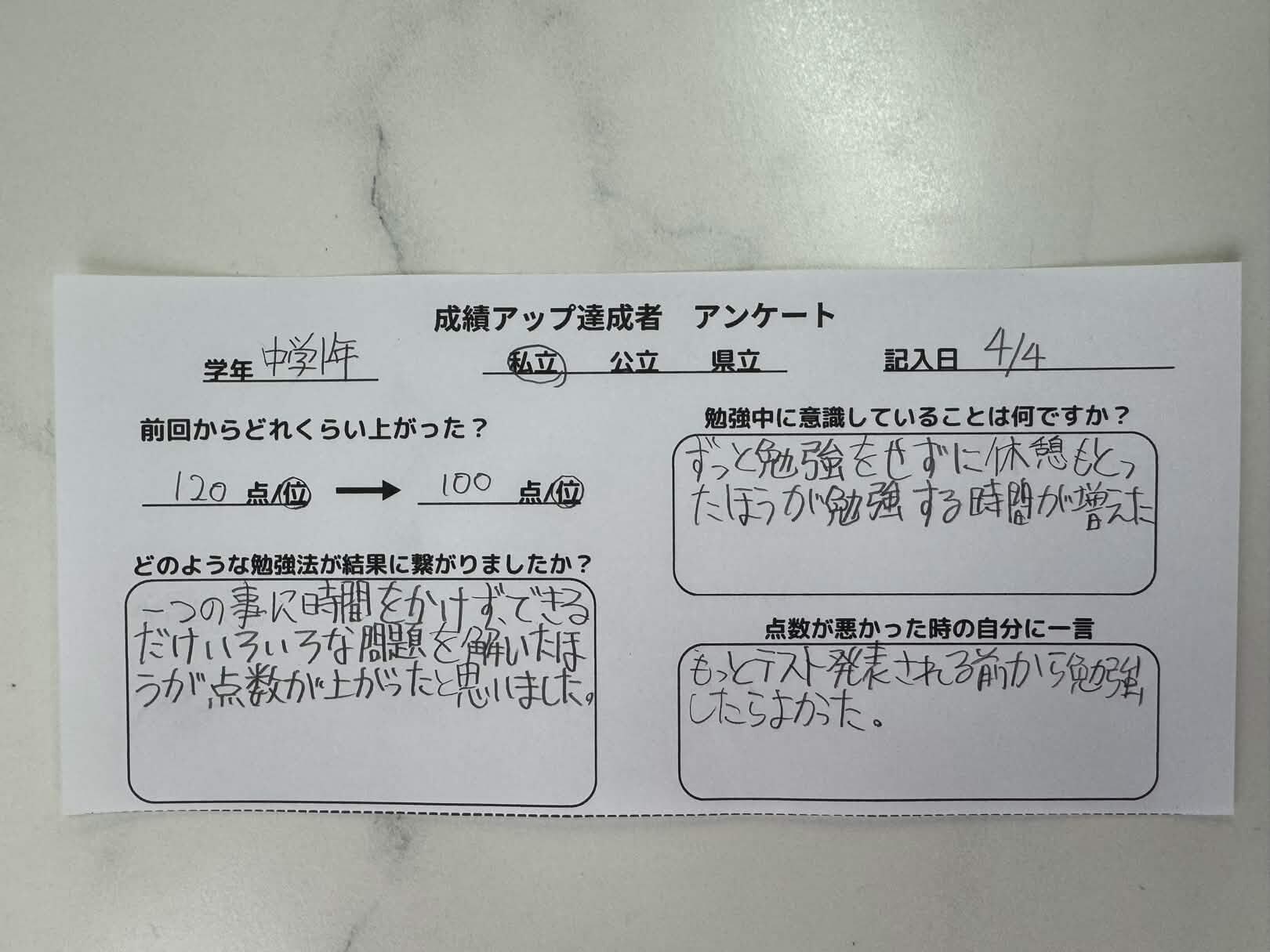 | 生徒の皆さんに一言 | 勉強はやり方が全てです。効率よく勉強する方法を学べば、塾に通わなくても結果を出せるようになります。勉強、スポーツ、仕事すべてで結果を出した考え方を学びましょう。教室でお待ちしています。 |