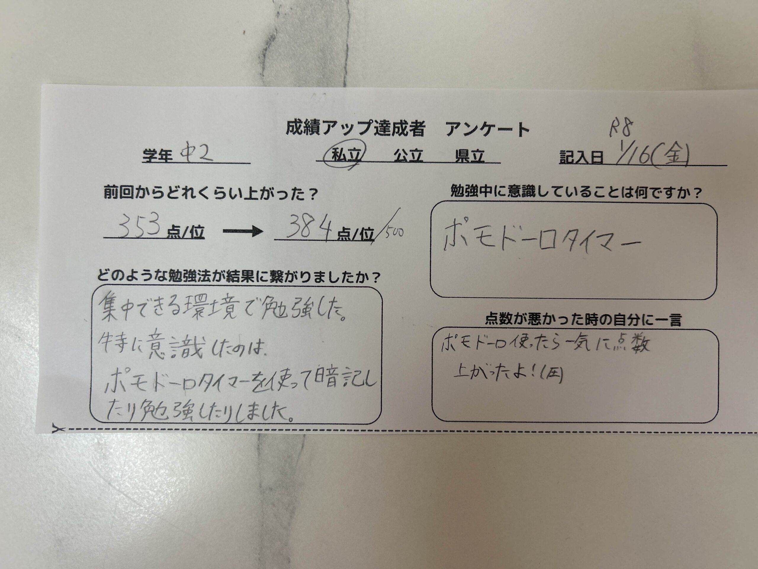 2学期中間テスト 成績アップ