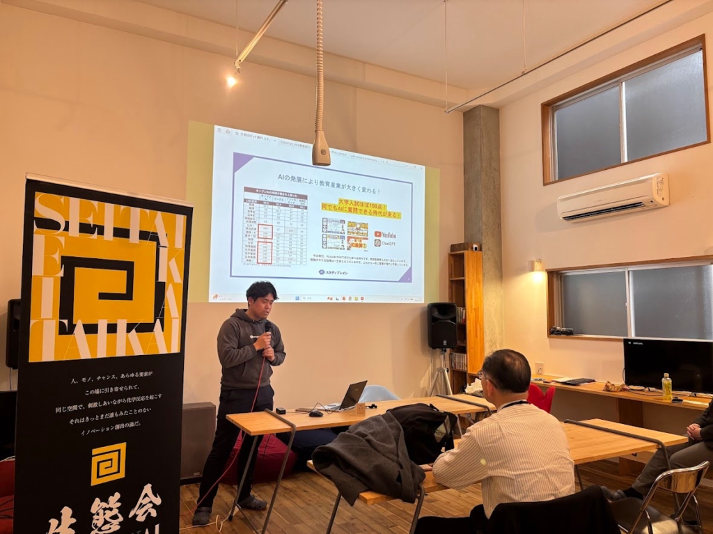 先日お知らせした生態会のマッチング会での代表のピッチの写真が届きました。